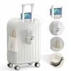 Introducing our innovative 20-inch carry-on suitcase designed to elevate your travel experience. Crafted from durable ABS material with a textured surface, this suitcase is built to withstand the rigors of travel while maintaining its sleek appearance. The hidden folding cup holder on the back provides convenient storage for umbrellas, coffee, water cups, and more, freeing up your hands for hassle-free travel.