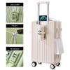 Equipped with a USB digital charging port, this suitcase ensures that all your devices stay powered up on the go. The four 360-degree universal rotating wheels glide effortlessly, making it a breeze to maneuver through busy airports and streets. The adjustable pull rod offers three height levels to suit your comfort.
