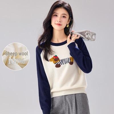 Maglione Pullover alla Moda Jacquard Floreale con Vestibilità Ampia da Donna