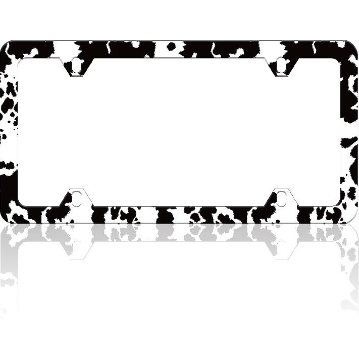 Black And White Cow Print License Plate Frame Funny Spots License Plate Frames Animal Pattern Auto Accessory Bracket Stainless Steel License Plate