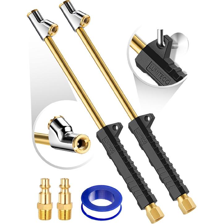 2 Pack 12" Extended Reach Dual Head Air Chuck, 2-Way Connection 1/4" FNPT Straight Foot Lock On Tire Inflate Chuck, Tire Chuck W/Quick Plug, Air