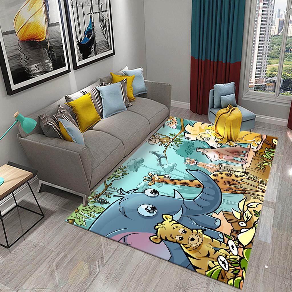 Cartoon Zoo Carpet Cute Animal Flower Rugs Kids Boys Bedroom Non-slip Play Area Mats Home Living Room Kitchen Decor Floor Mat