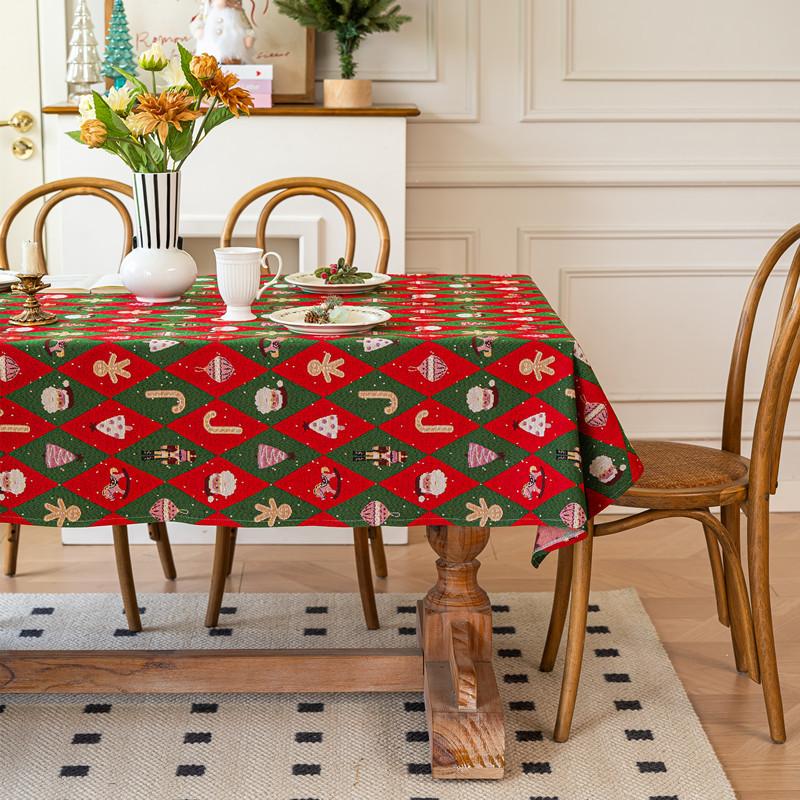 Retro Polyester Cotton Color Woven Jacquard Christmas Tablecloth Rectangular Coffee Table Tablecloth Dining Table Cloth
