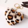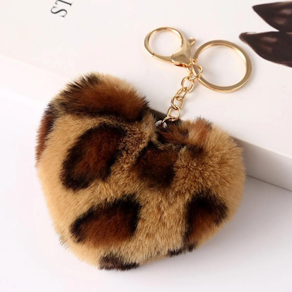 Set Portachiavi Pompom Peluche a Forma di Cuore | Palla di Pelo a Forma di Cuore con Stampa Leopardo | Pelliccia Sintetica Soffice di Alta Qualità per Chiavi Auto Borse Regali