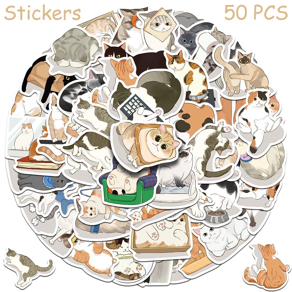 50pcs Cartoon Cat Stickers Decals For Phone Laptop Scrapbook Refrigerator Wall DIY Aesthetic Waterproof Stickers Creative Gifts