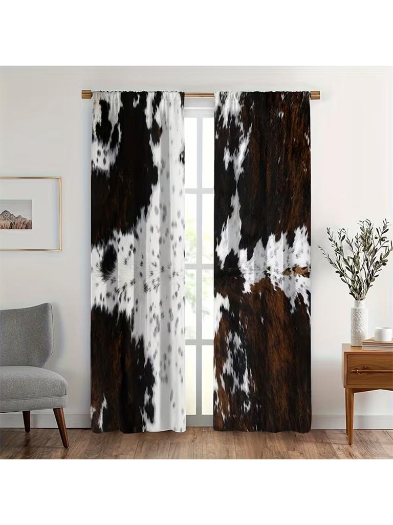 2pcs Cowhide Patterned Curtains, Design for Living Room Bedroom Home Window Decoration, Rod Pocket Curtains