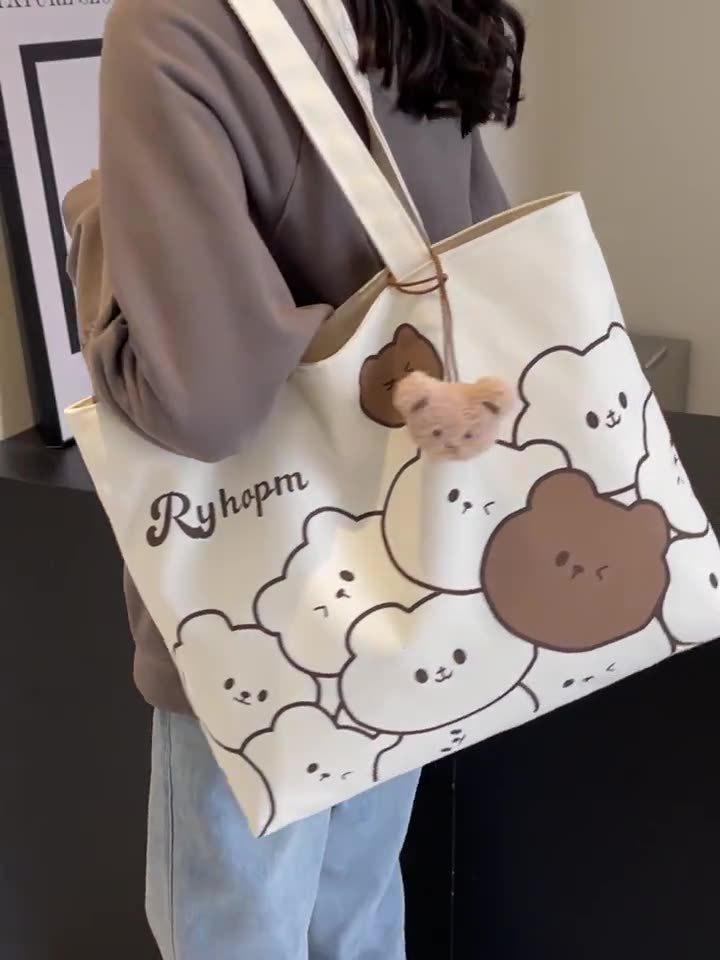 Large Capacity Japanese Cartoon Canvas Tote - Versatile Student and Commute Shoulder Bag