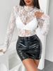 Spring 2025 Women's Solid Color Lace Transparent Slimming Long Sleeve Top