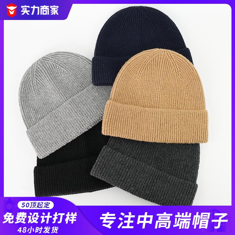 Simple thickened solid color knitted hat acrylic embroidered LOGO spot wool hat showing face small cold hat wholesale