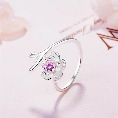 Nuova Moda Fiore di Ciliegio Gioielli in Argento Sterling 925 Carino Temperamento Fiore Cristallo Semplice Raffinato Anelli Apribili XZR020