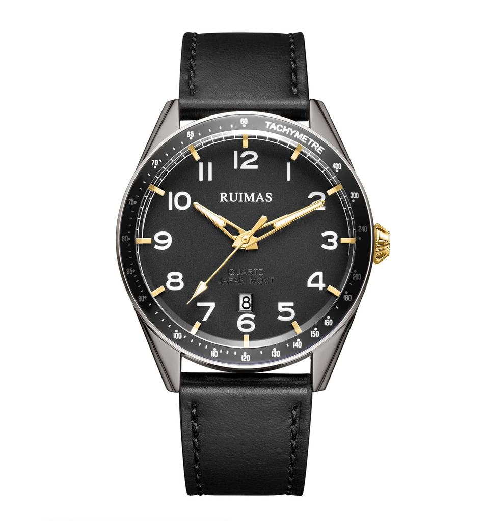 Fashion Quartz Watch with Black Leather Strap and Silver Gray Waterproof Watch Men's