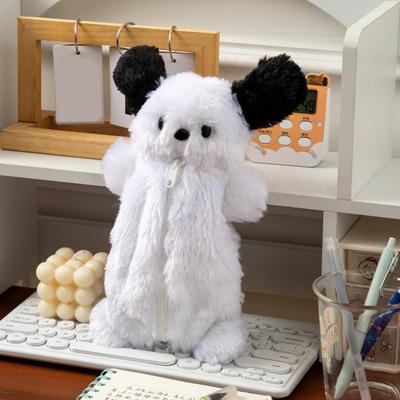 Astuccio portapenne con motivo a cucciolo, in peluche, grande capacità, con chiusura a cerniera, per cosmetici