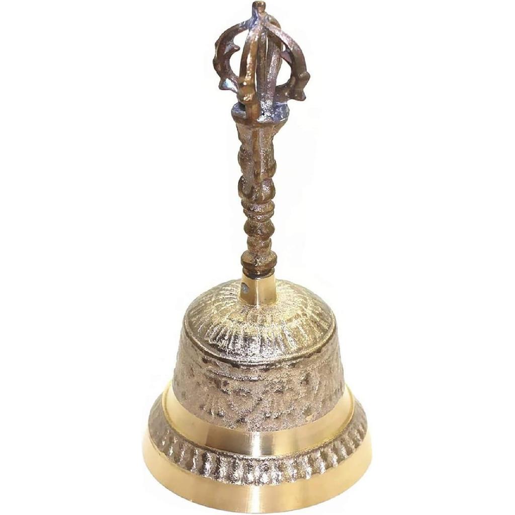 Hand Bell 6.8 Inch High Brass Antique Handbell Vintage Style Loud Solid Brass Hand Call Bell for School Reception Dinner Shop Hotel Service