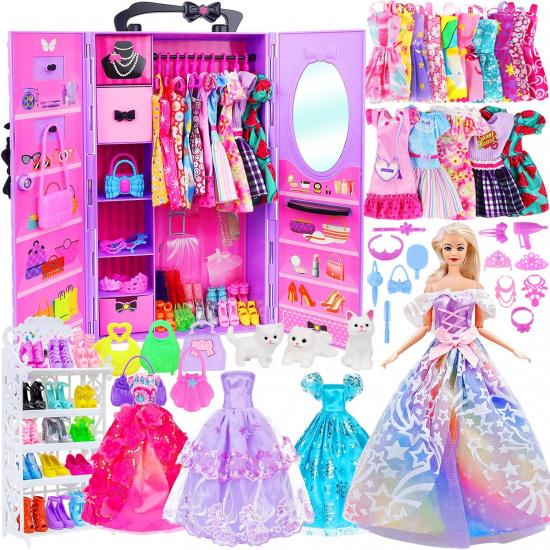Girl Doll Clothes and Accessories Girl Doll Closet Wardrobe with Clothes, Dresses, Shoes and Other Girl Doll Stuff for 11.5 Inch Girl Doll Clothes as