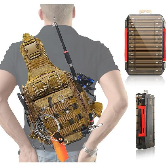 Aertiavty Fishing Backpack, Fishing Bag with Tackle Box, Compact Fishing Tackle Bag, Fishing Tackle Backpack with Rod Holder for Outdoor Sport