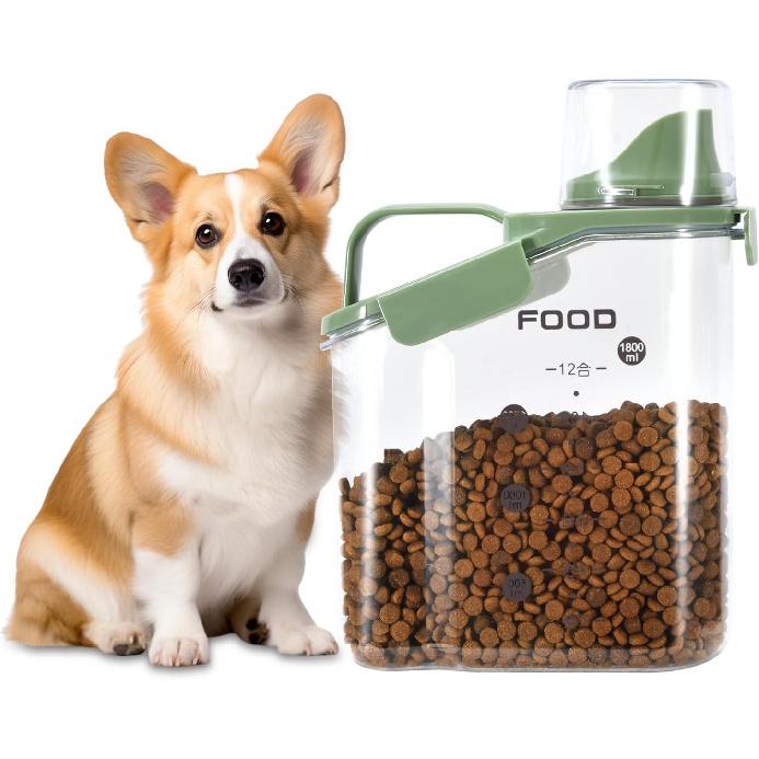 Dog Food Container Small, Pet Food Container with Airtight Pour Spout, Cat Food Storage Container with Measuring Cups, Portable Small Dog Food