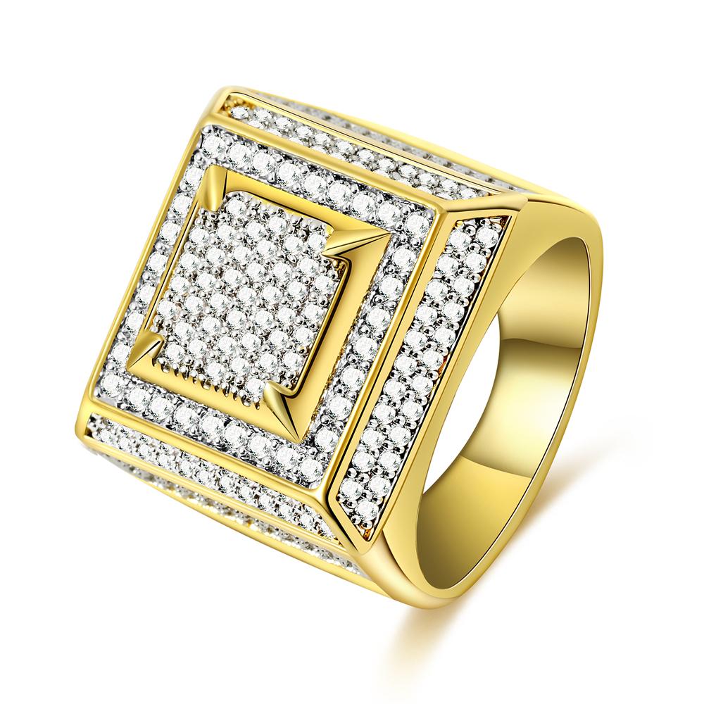 Popular Square Shape Ring Bling Iced Out Zircon Ring Hip Hop Men's Unisex Brass Gold Plated CZ Engagement Wedding Eternity Rings