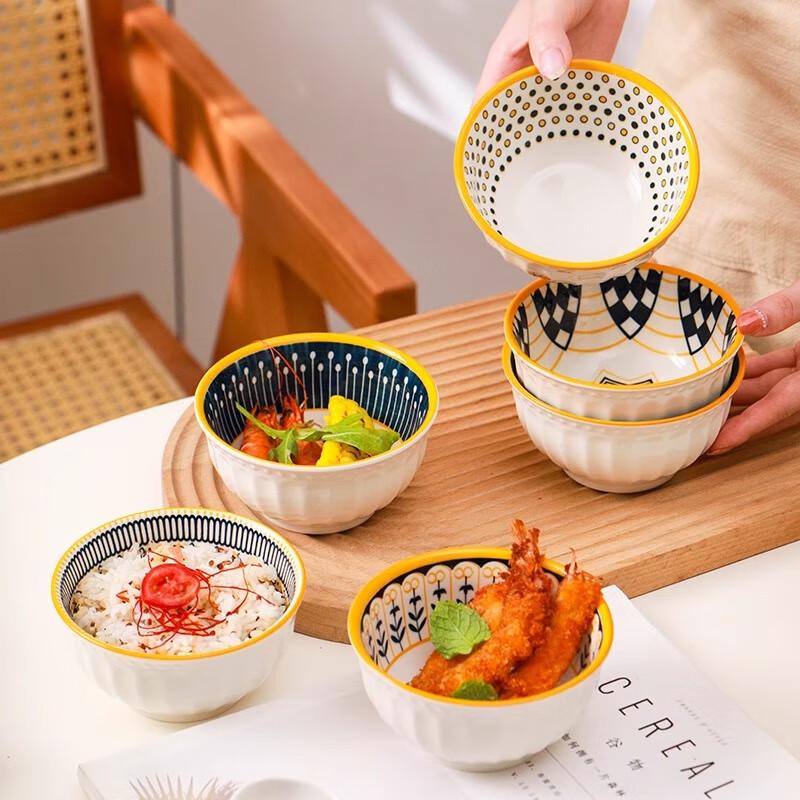 Gonghe Jingpin Japanese Nordic Ceramic Rice Bowl Set, 6-Piece