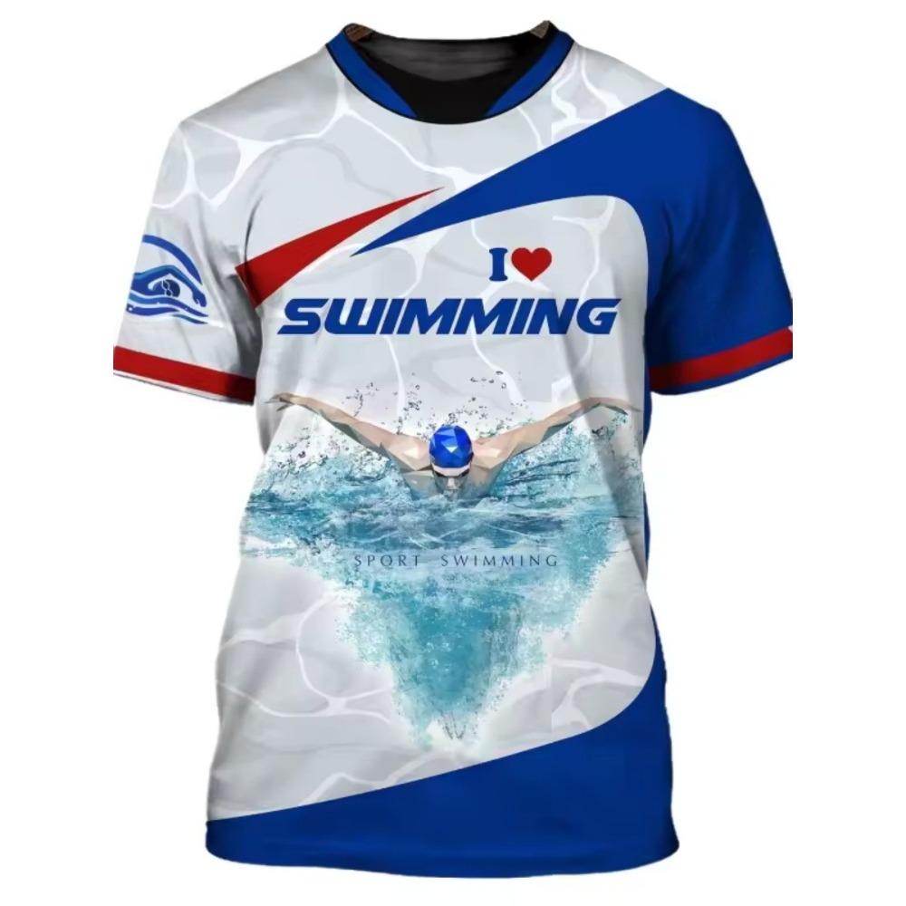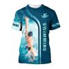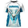 Men's 3D Printed Swimming T-shirt Loose Casual Comfortable Breathable Plus Size Short Sleeved Versatile Fashion T-shirt