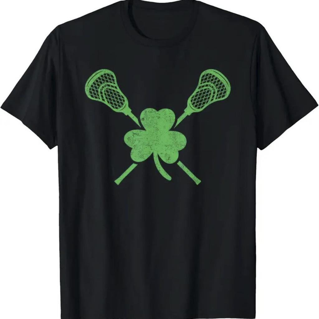 Lacrosse Shamrock St Patricks Day Graphic Tee Men Boys Cotton Casual T-Shirt Sports Print Roundneck