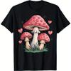 Pink Heart Mushroom Cottagecore Graphic Tee Men Casual Short Sleeve T-Shirt Nature Forest Daily Wear