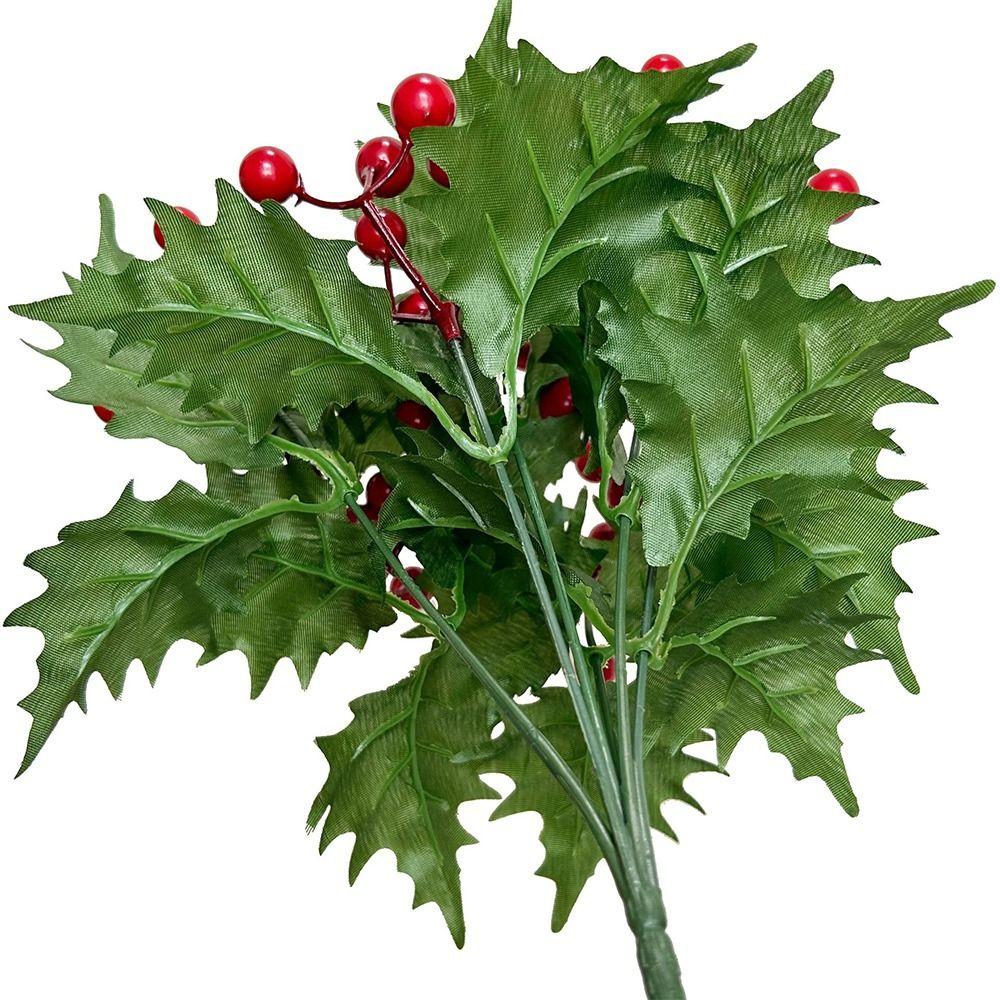 7Branches Artificial Christmas Berry Red Berries Green Holly Leaves Christmas Decorations Desktop Oranment Foam