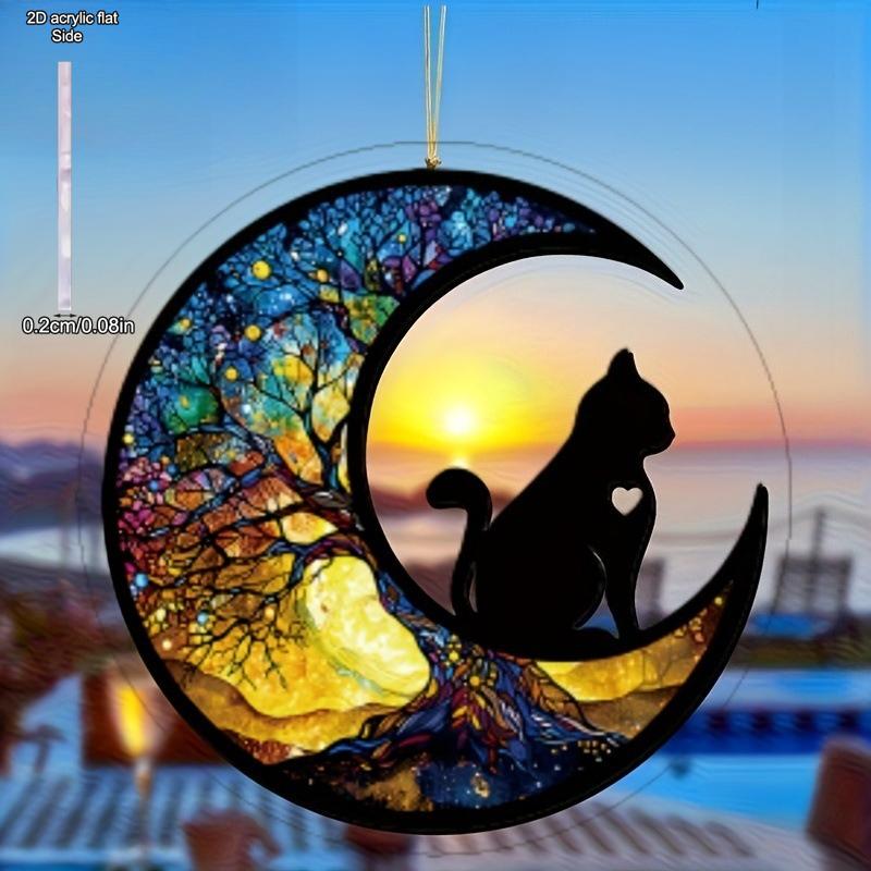 Cat Moon Tree of Life Theme Sun Catcher Acrylic Hang Sign, Nurseries, Vintage Home Decor Wall for Bar Kitchen, Restaurant Shop Wall Decor, Gar