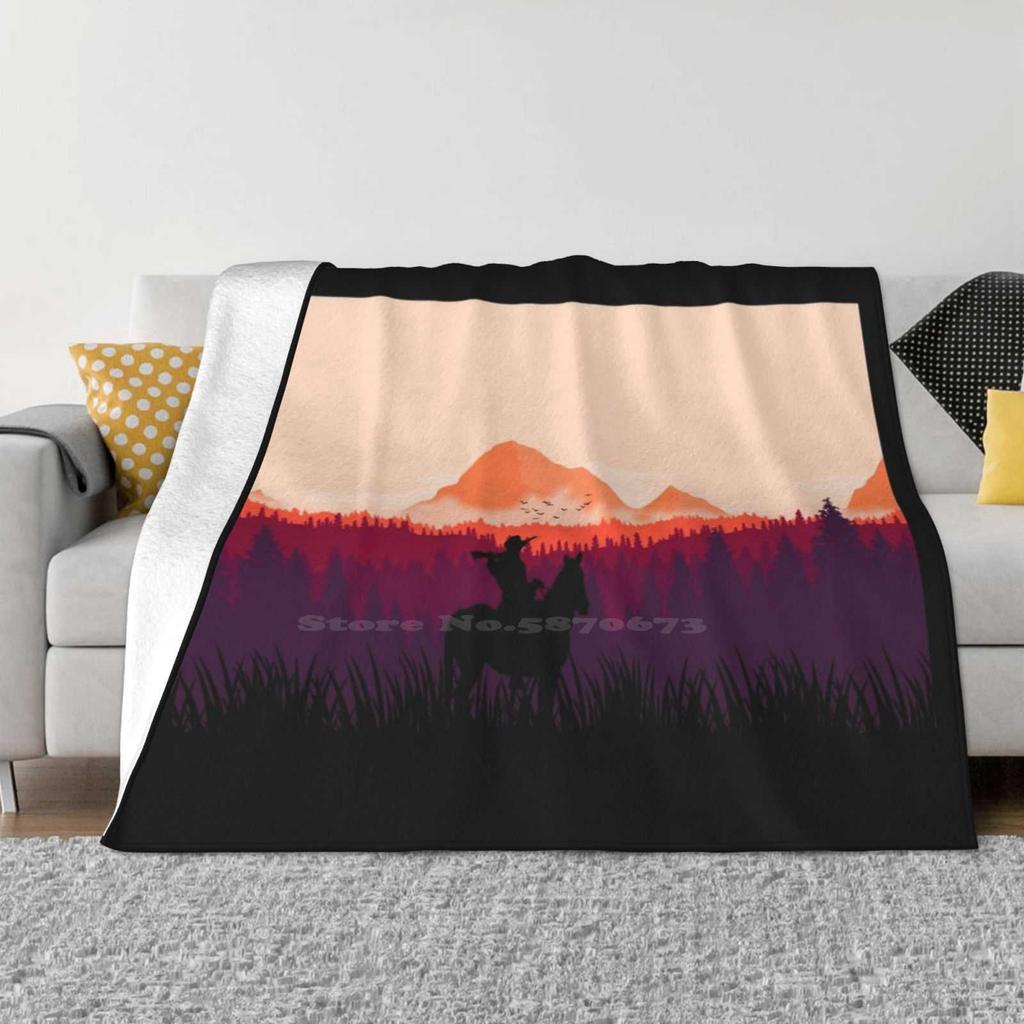 Far West Sunset New Arrival Fashion Leisure Warm Flannel Blanket Redemption 2 Rdr2 Gaming Arthur Morgan Sunset Horse Riding