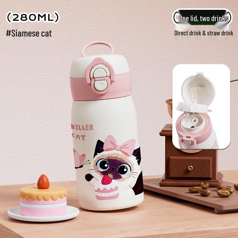 Diller Siamese Cat Dual-Drink Insulated Water Bottle
