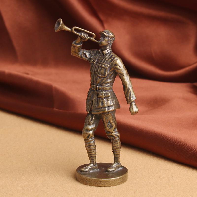 Brass Long March Red Soldier Statue Ornament Patriotic Theme Eighth Route Army Trumpeter Anti-Japanese War Commemorative Co