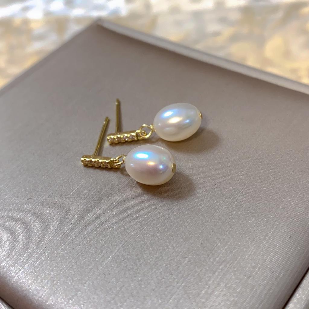 Natural freshwater strong light pearl S925 silver needle stud earrings simple and versatile personality daily rice bead earrings girls