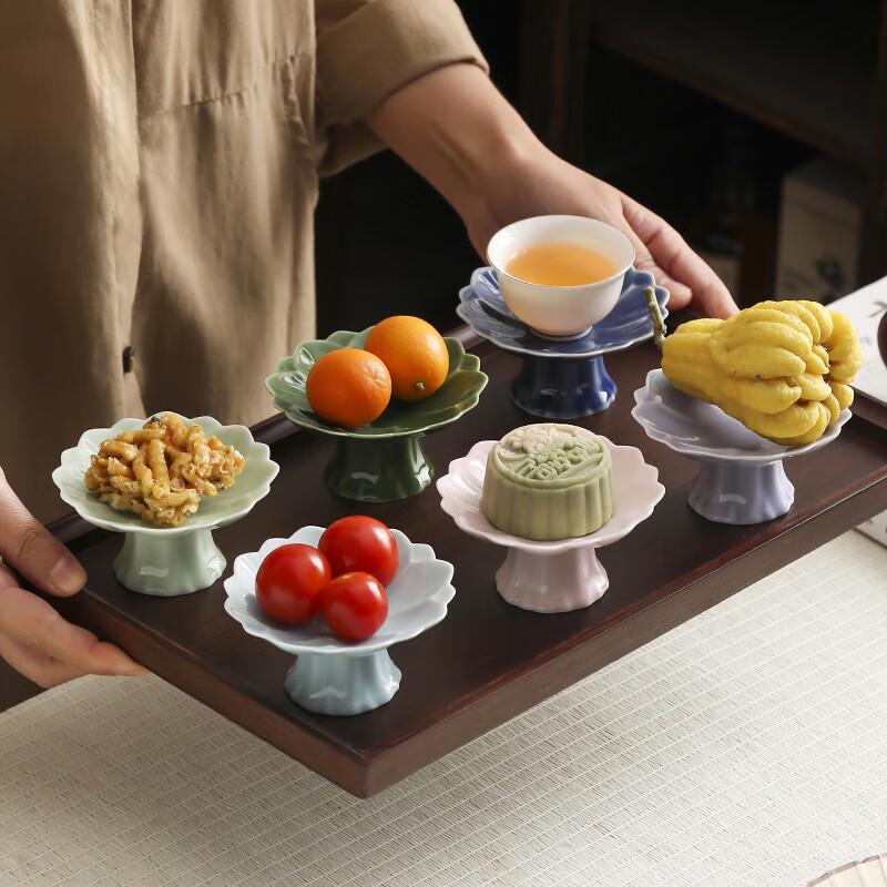 VAKADA Chinese Style Pedestal Ceramic Snack Plates Set of 6