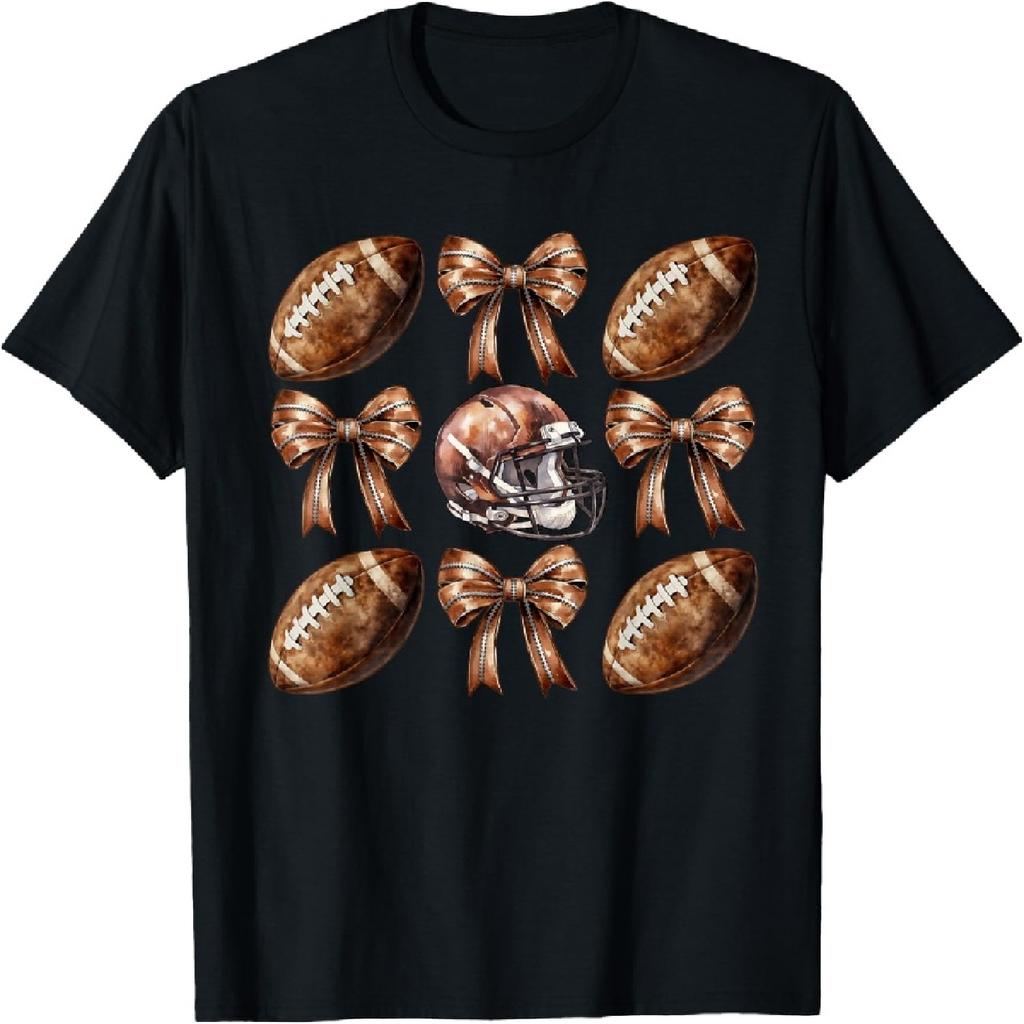 Vintage Football Helmet and Bow Pattern For Game Day T-Shirt