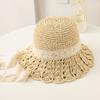 Women Summer Crochet Straw Hat Hollow Out Larger Brim Fashion Lace-UP Bucket UV Protect Foldable Beach Sun Cap