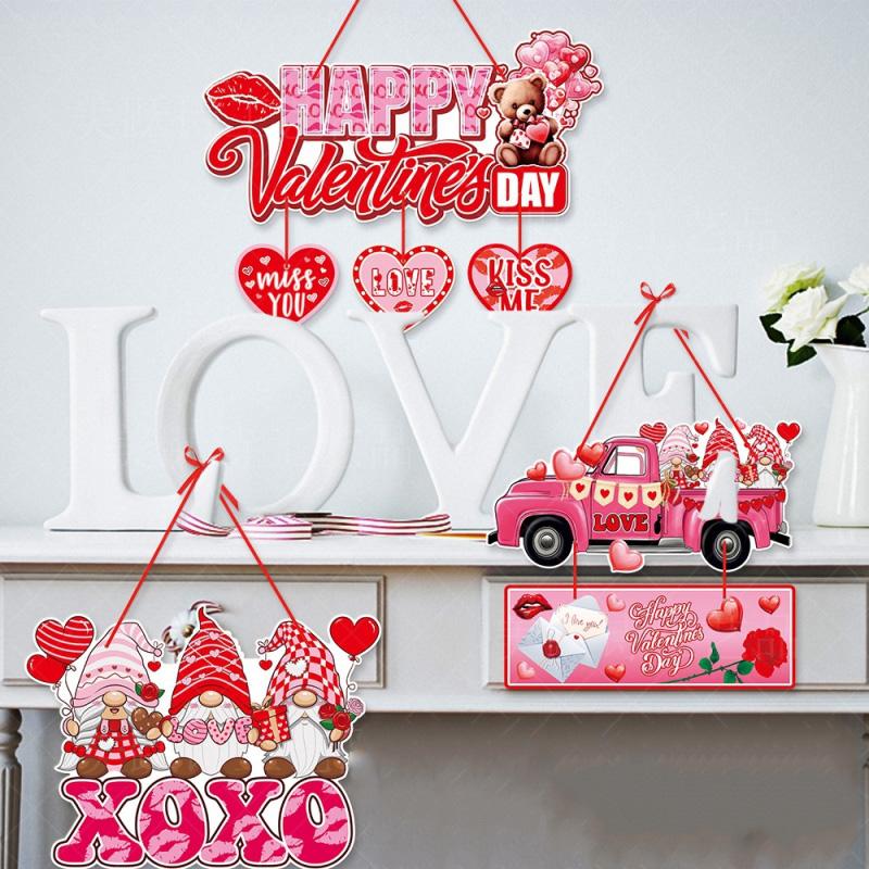 New Valentine's Day Door Hanger Banner Garland Heart Love Faceless Doll Pendants Window Ceiling Hanging Wedding Party Home Decor