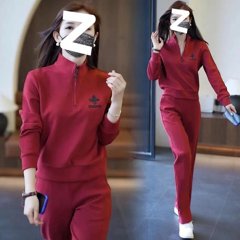 Fashionable Plus-size Sportswear Suit for Early Autumn, Loose and Slim Fit for Fat Girls, Casual Stand-up Collar, Long-sleeved Two-piece Suit