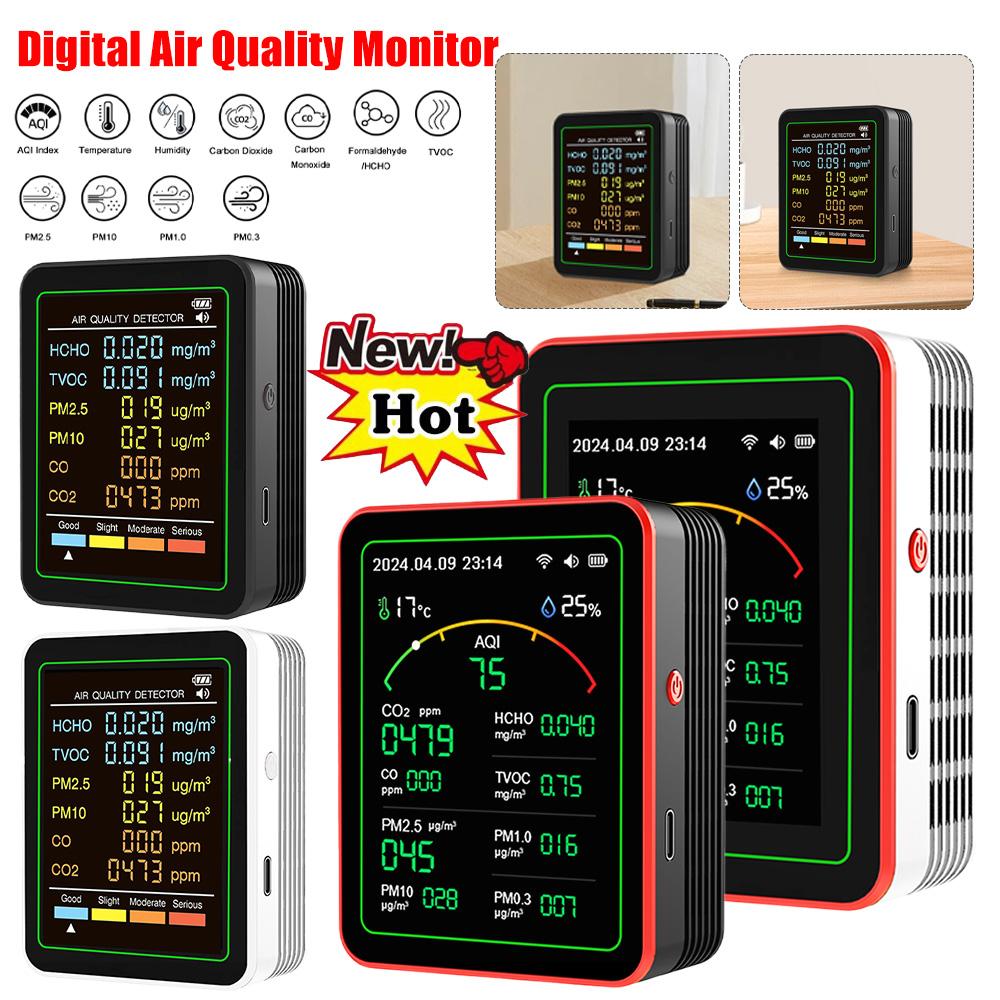 Multifunctional Air Quality Monitor APP Control Portable Temperature Humidity Meter Rechargeable Household CO CO2 TVOC HCHO Test