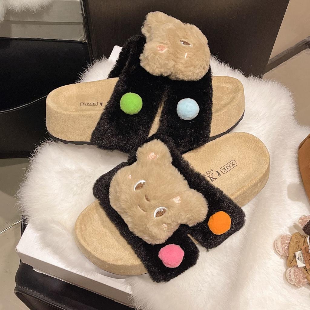 Fashion Versatile Comfortable Soft Bottom Cartoon One-Word Slippers Cute Thick Bottom Non-slip Cotton Slippers Women