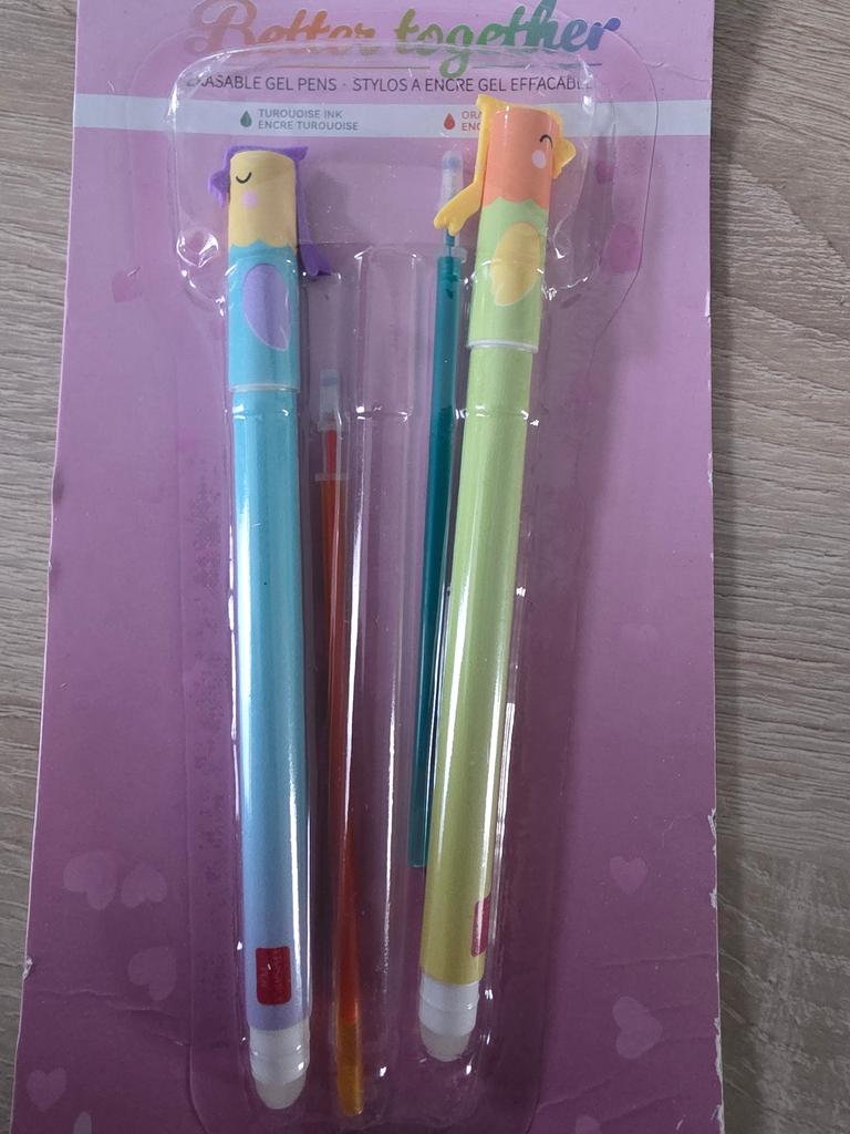 L'articolo presentato nelle foto assomiglia alle penne della marca, Legami. Tuttavia, l'articolo ricevuto è diverso, le penne sono più grosse, i cappucci sono più larghi delle penne. Infine, il cerchio argentato è inesistente.