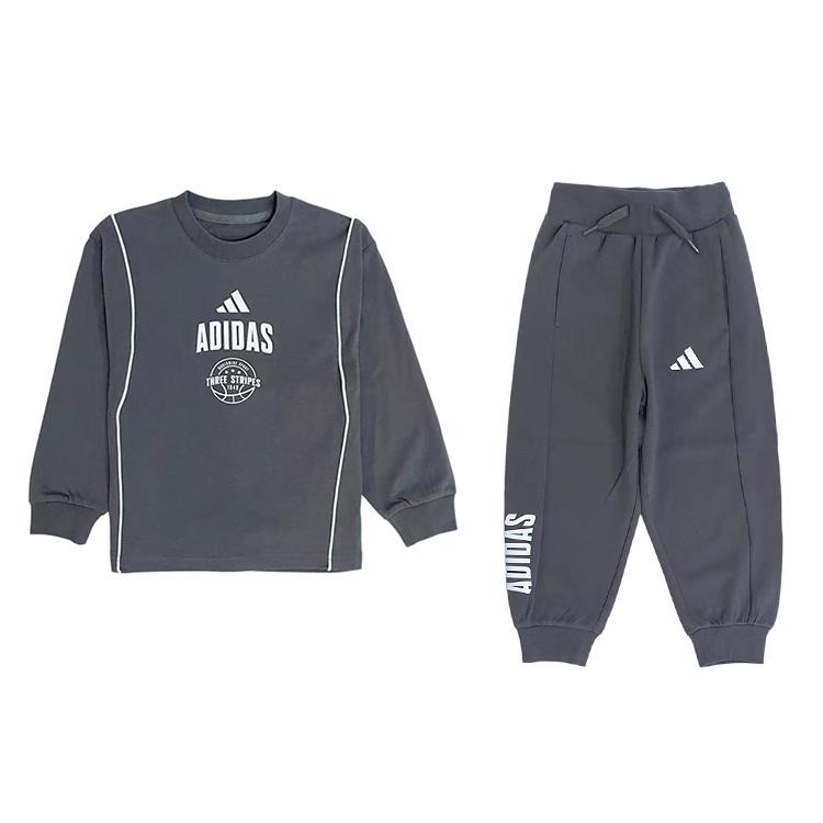 Adidas Casual Sports Suit Ss25 Round Neck Pullover Long Sleeve Sweatshirt Fashion Simple Drawstring Pants Kids suit Dark-Gray KC1551