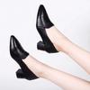 2025 spring and autumn new high heels women's middle heel single shoes soft leather shallow mouth soft leather pointed thick heel