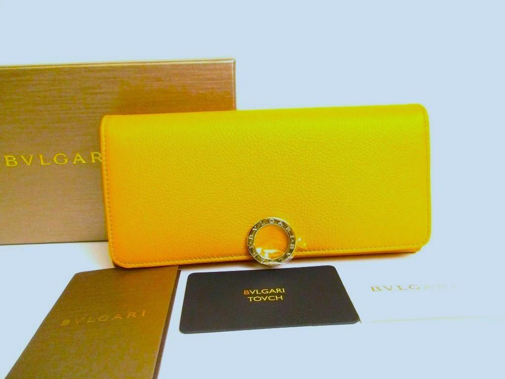 Product : BVLGARI Yellow Leather Logo Clip Gold H/W Flap Long Wallet #b025