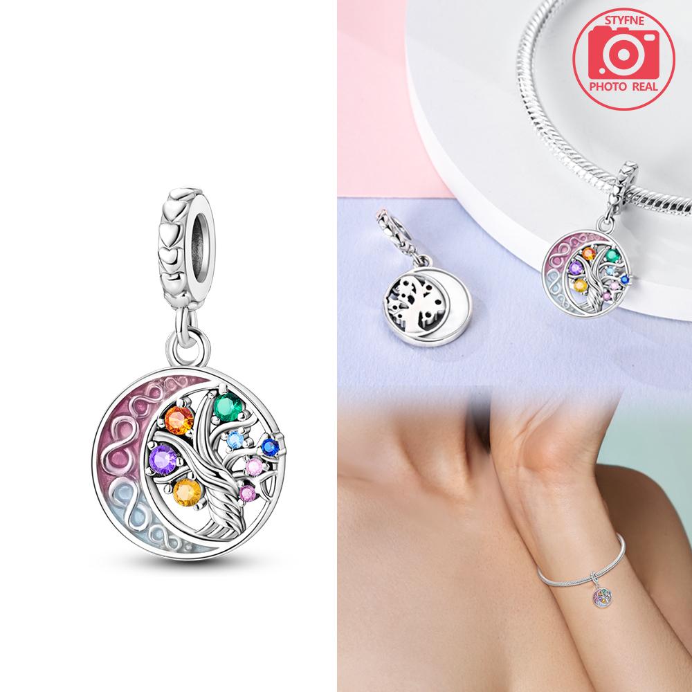 Moon Life Tree Pendant Copper Colors Charm Beads Fit Original Charms Bracelet Beads For Women Jewelry Making Gifts