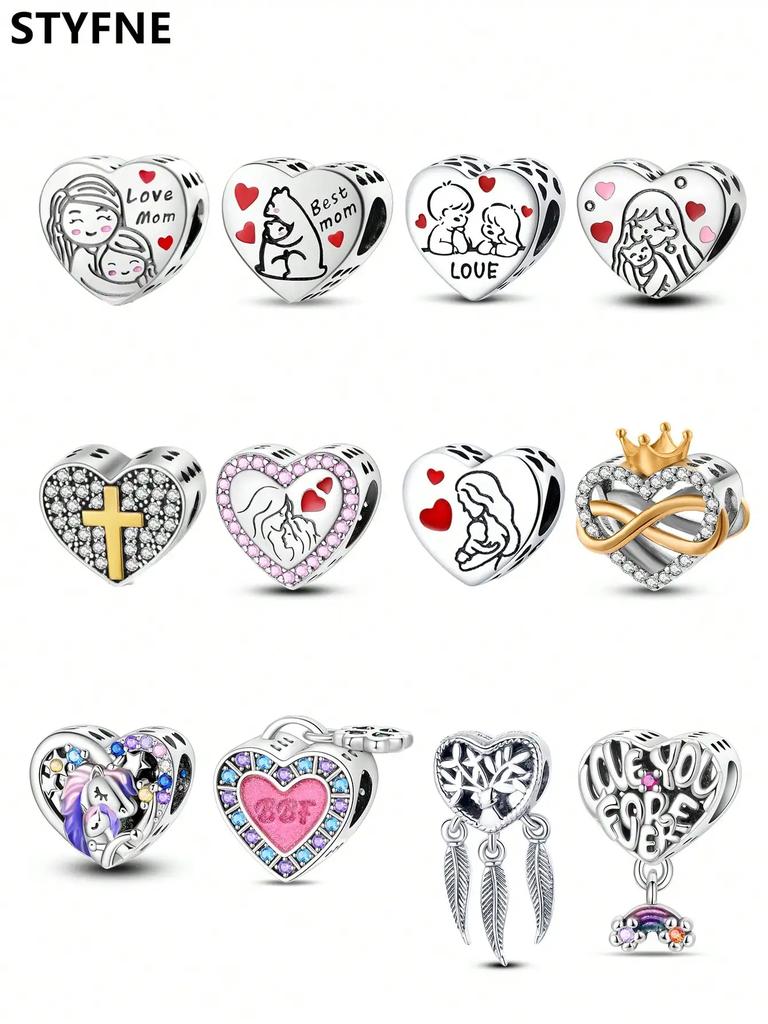 Charms Plata Copper Colors Family Love Beads Charm Beads Charm Pendant For Original Bracelet For Women Diy Jewelry Love Gift
