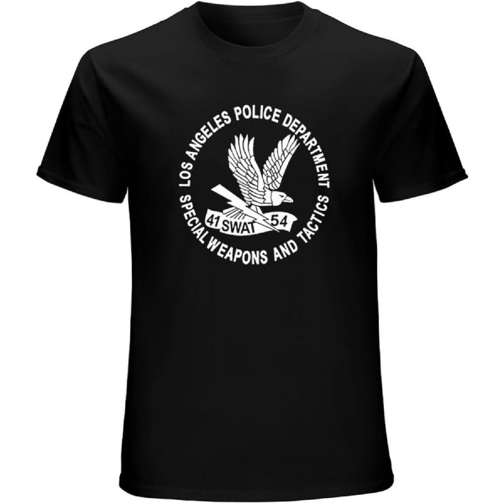 FISH SKIN Swat LAPD Graphic Top Printed Shirt Short-Sleeve Mens Vintage T Shirt Short Sleeve Funny Top Black