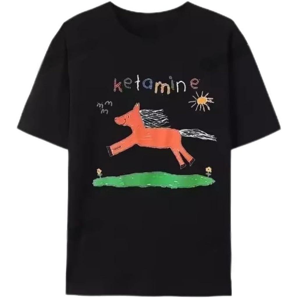 Ketamine Funny Cartoon T Shirt Horse Anime Graphic Women Men Tees Loose Casual T-Shirts Hipster Harajuku Cotton Couples Tshirts (1) Black