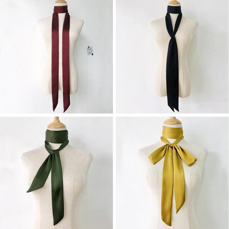 5x200cm Long Skinny Hair Scarf For Women Silky Satin Headband Cute Neckerchief Solid Colors Fashion Bag Scarves For Ladies