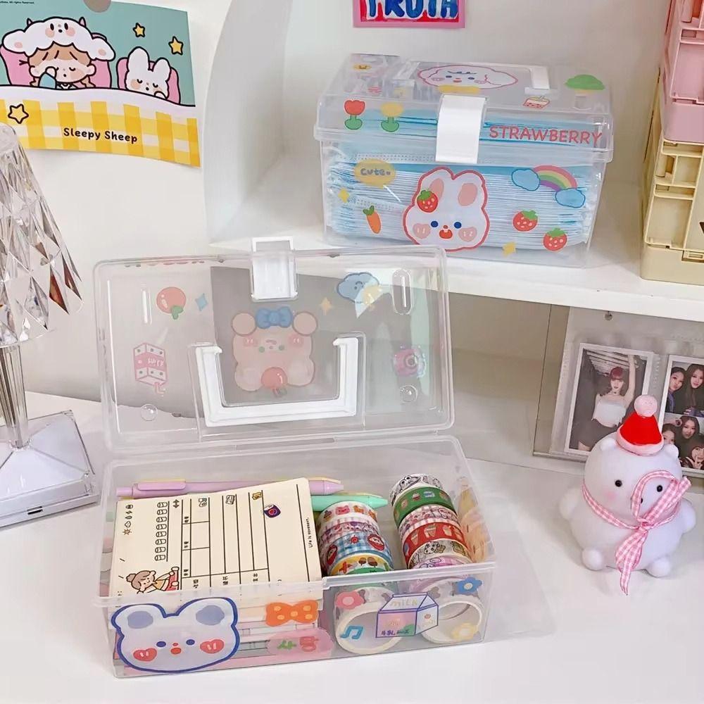 1Pcs Transparent Plastic Storage Box Large-Capacity Sundries Stationery Mask Miscellaneous Container Box Waterproof Dustproof