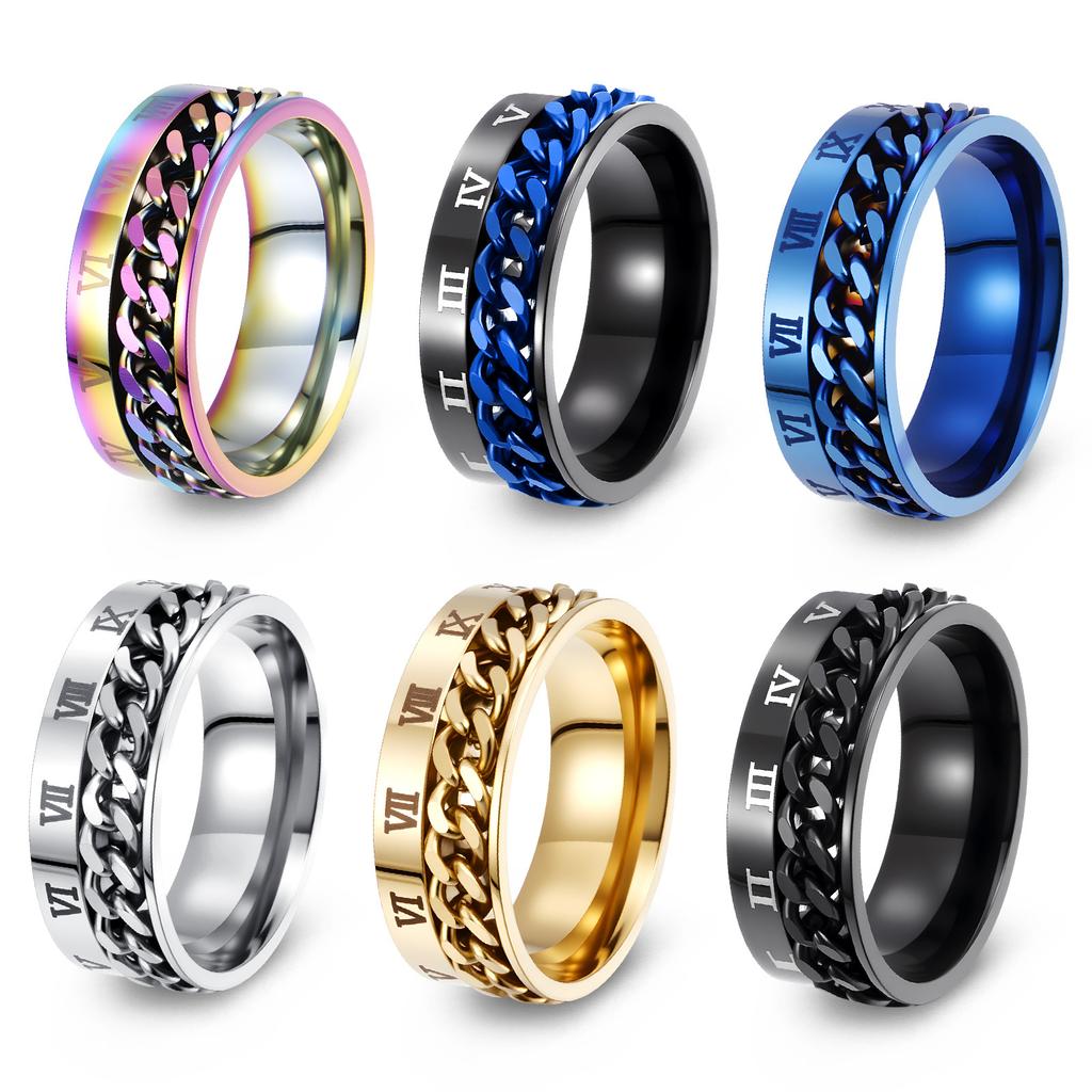 European and American Roman Numeral Ring, Rotatable Chain Ring, Stress-reducing Men's Hand Jewelry