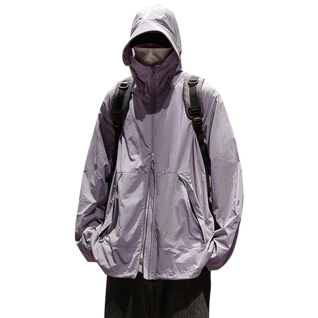 FOMANSH UV Protection Hooded Loose Full Street Comfortable for Outdoor Wear Men's Jacket, Breathable, Lightweight, Fit, Zip-Up, Style,